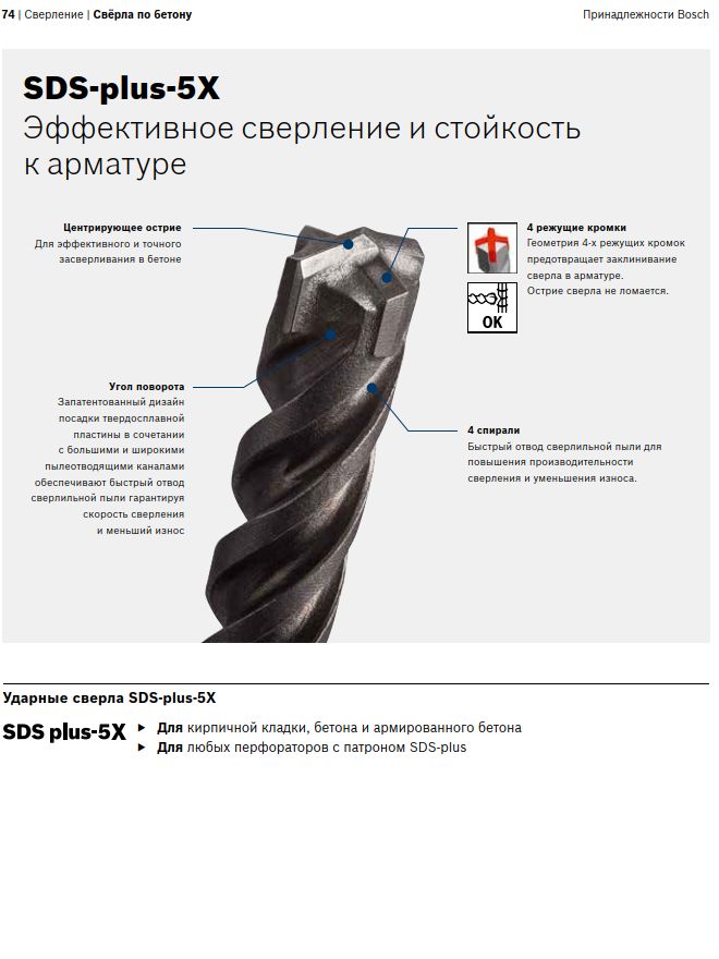 Рекомендации: Бур SDS+ 5X, 8х110мм - рекомендован для сверления бетона, железобетона, кирпичной кладки.