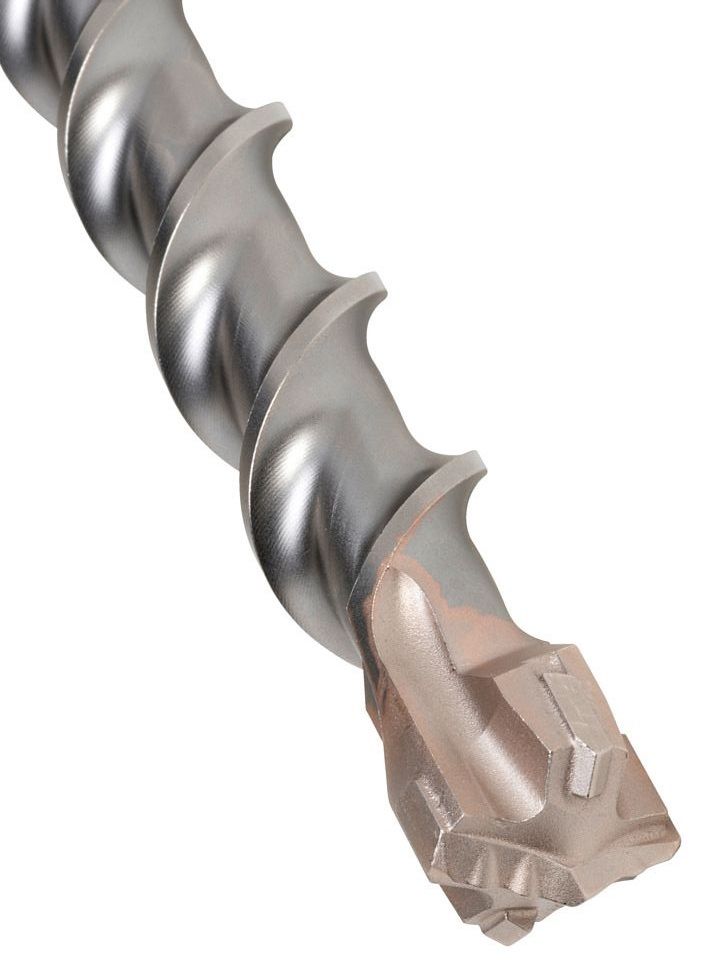Симметричная твердосплавная головка имеет центрирующий наконечник и 4 усиленные режущие кромки, надежно крепится в стальном теле бура за счет увеличенной площади