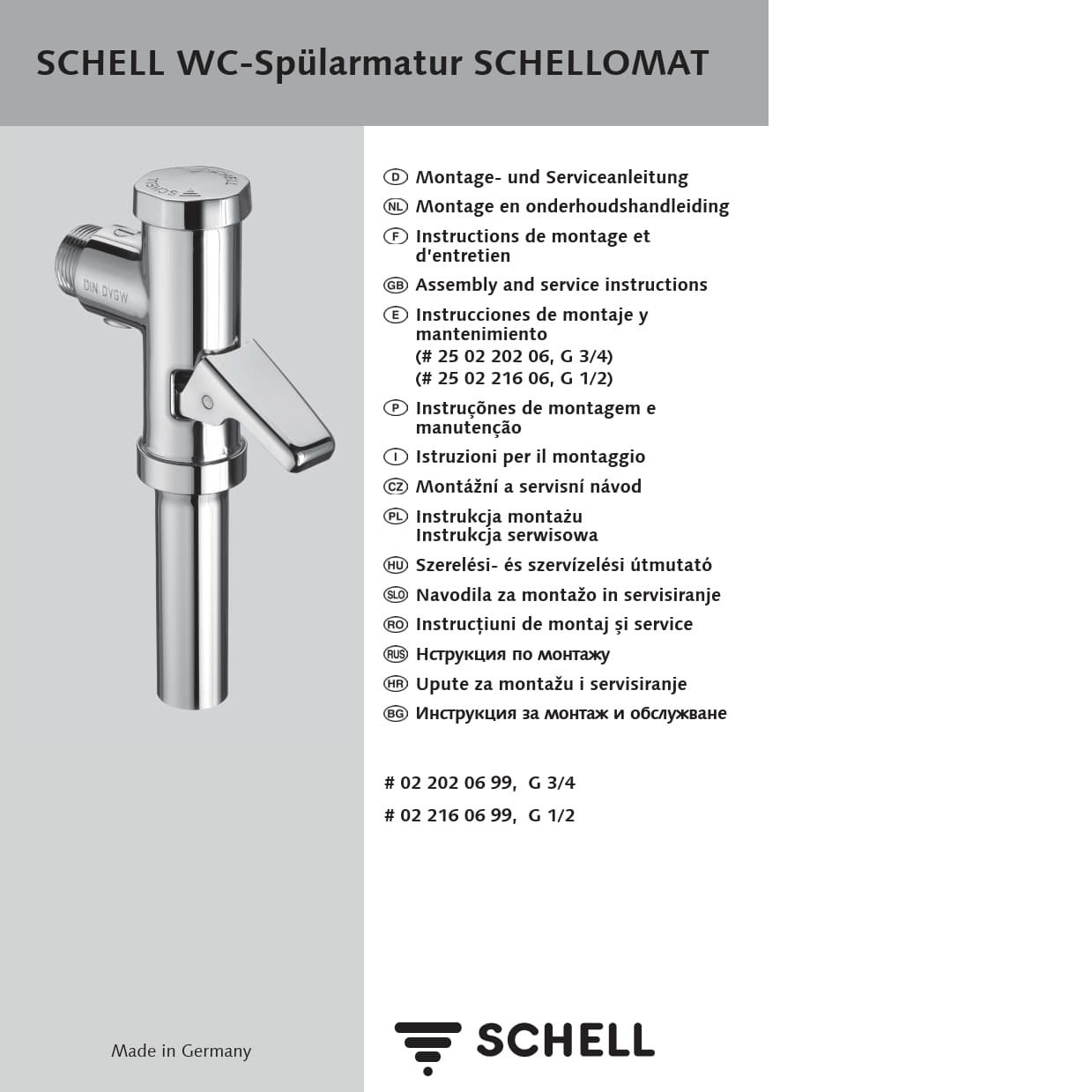 Cливной клапан, Смеситель для унитаза, Schell 022160699 ОМАТ с рычагом, 1/2", хромированный, Германия