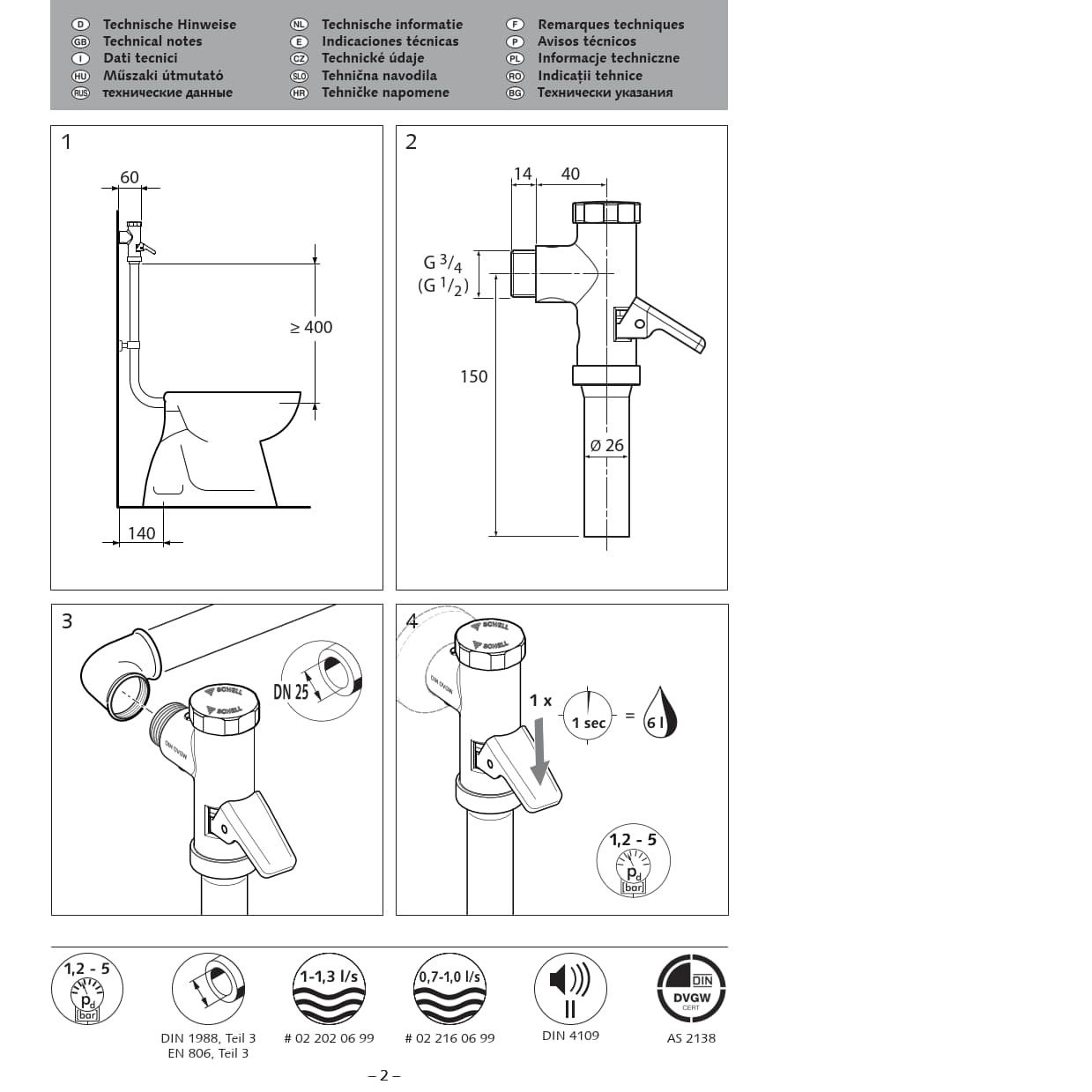 Поверхностная промывка унитаза под давлением SCHELL OMAT, DN 15