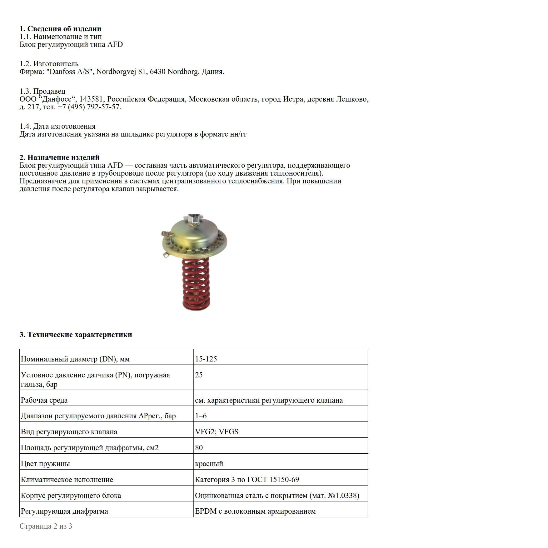 типа AFD/VFG2 (S), который применяется для поддержания постоянной величины давления в системах