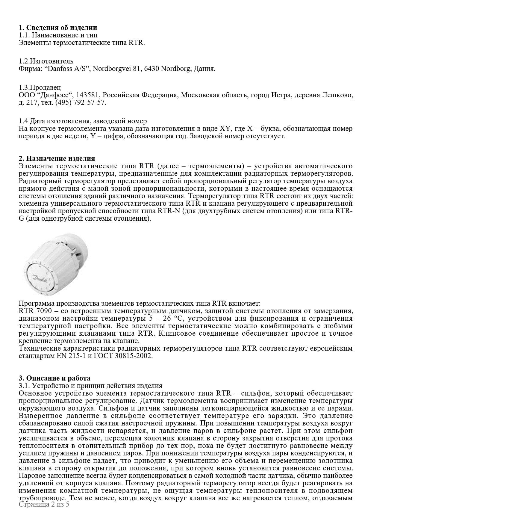 Элементы термостатические типа RTR (далее – термоэлементы) – устройства автоматического регулирования температуры, предназначенные для комплектации радиаторных терморегуляторов. Радиаторный терморегулятор представляет собой пропорциональный регулятор температуры воздуха прямого действия с малой зоной пропорциональности, которыми в настоящее время оснащаются системы отопления зданий различного назначения. Терморегулятор типа RTR состоит из двух частей: элемента универсального термостатического типа RTR и клапана регулирующего с предварительной настройкой пропускной способности типа RTR-N (для двухтрубных систем отопления) или типа RTRG (для однотрубной системы отопления).