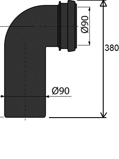 В комплекте поставки: стоковое колено 90/90 мм, прокладка, уплотнительное кольцо.