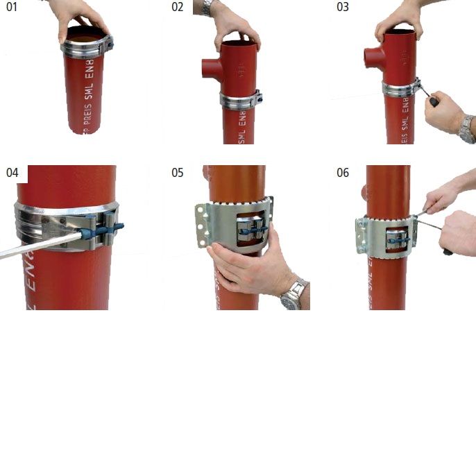 Номинальный диаметр усиливающего хомута UNIGRIP-KRALLE может быть от 50 до 200 мм. Хомуты UNIGRIP-KRALLE крепятся поверх соединительных хомутов. Широкое отверстие позволяет использовать усиливающие хомуты UNIGRIP-KRALLE с любым типом соединительных хомутов.