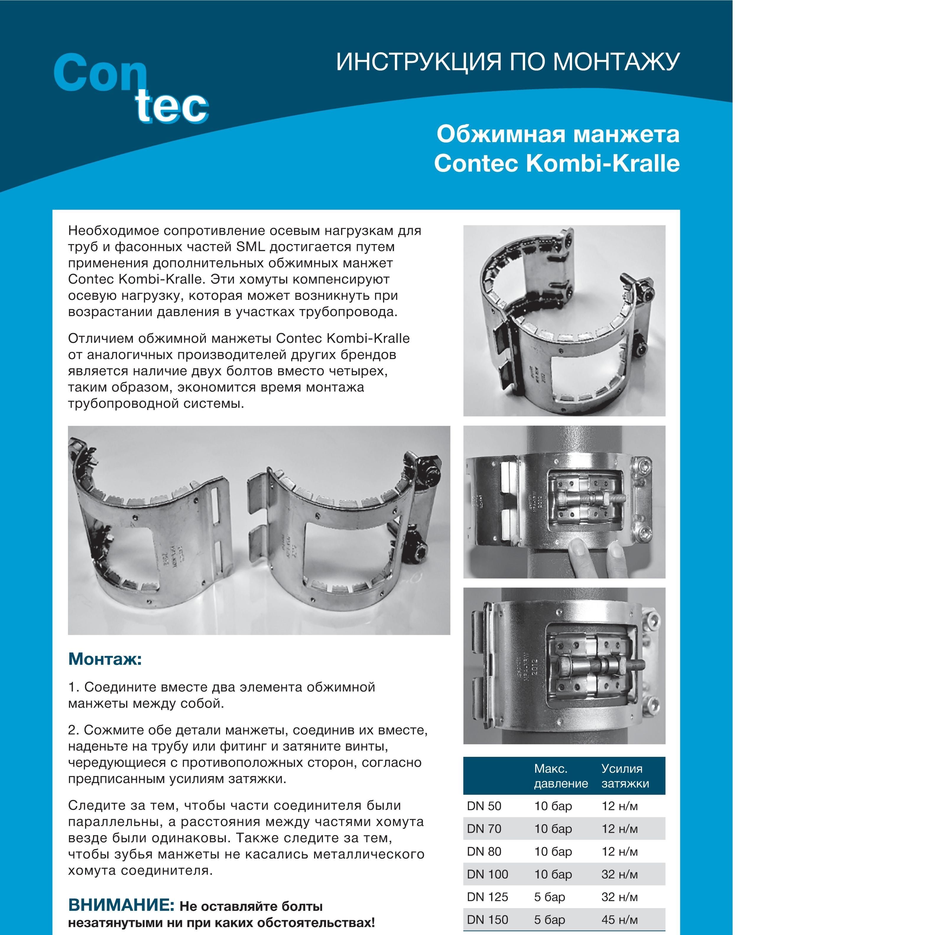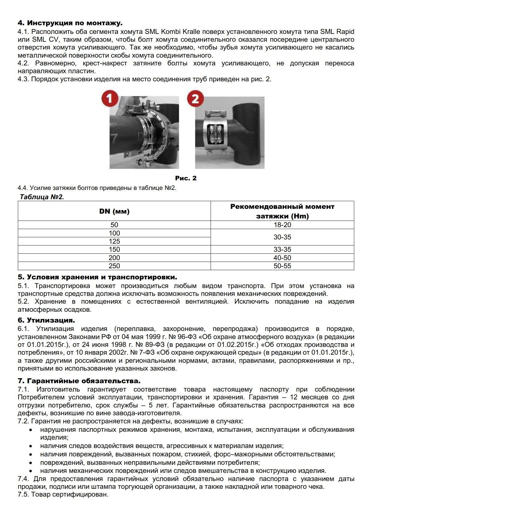 окну используется в сочетании с хомутами SML Rapid, SML CV на напорных участках трубопроводов