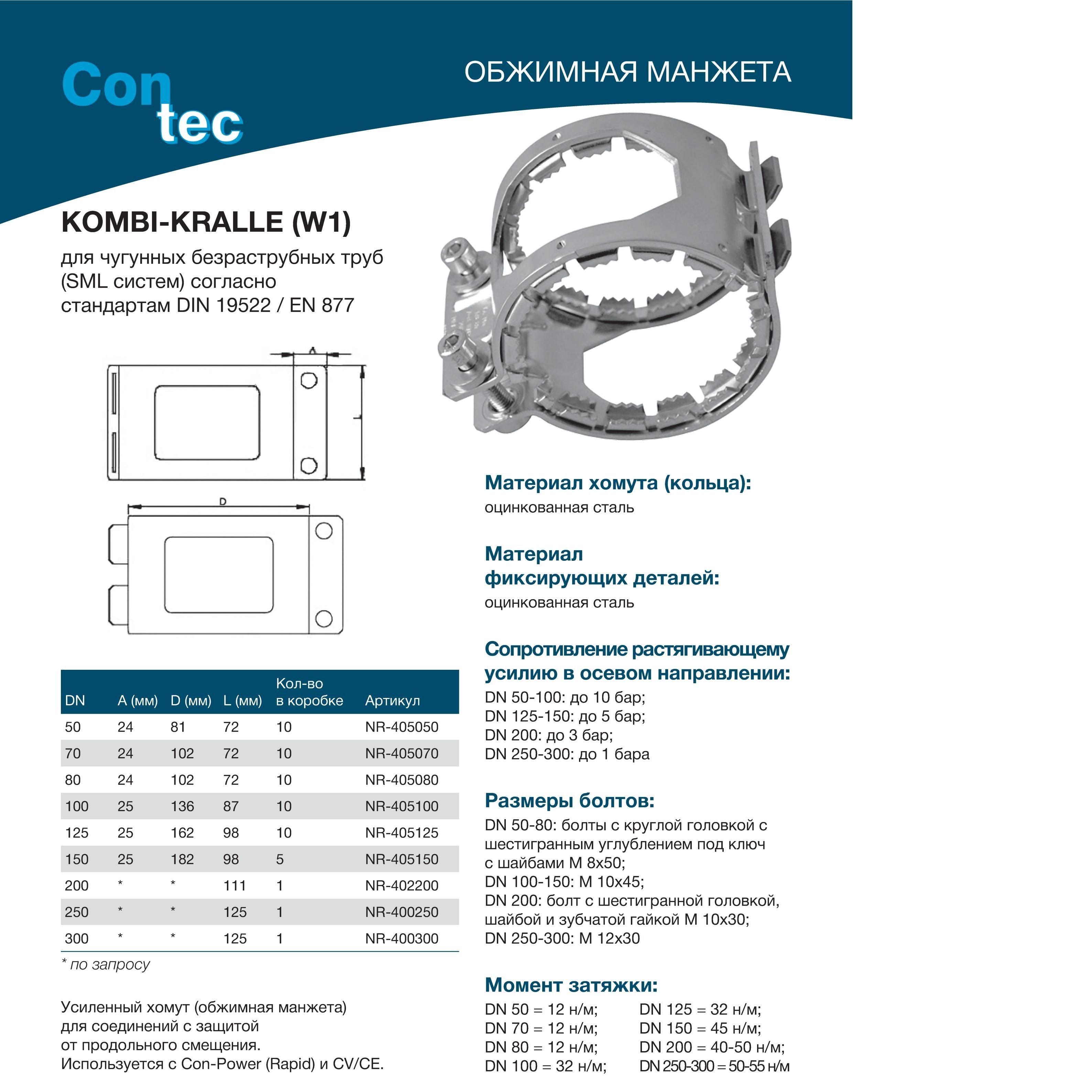 Хомут усиливающий SML Kombi Kralle применяется для защиты межтрубного соединения от