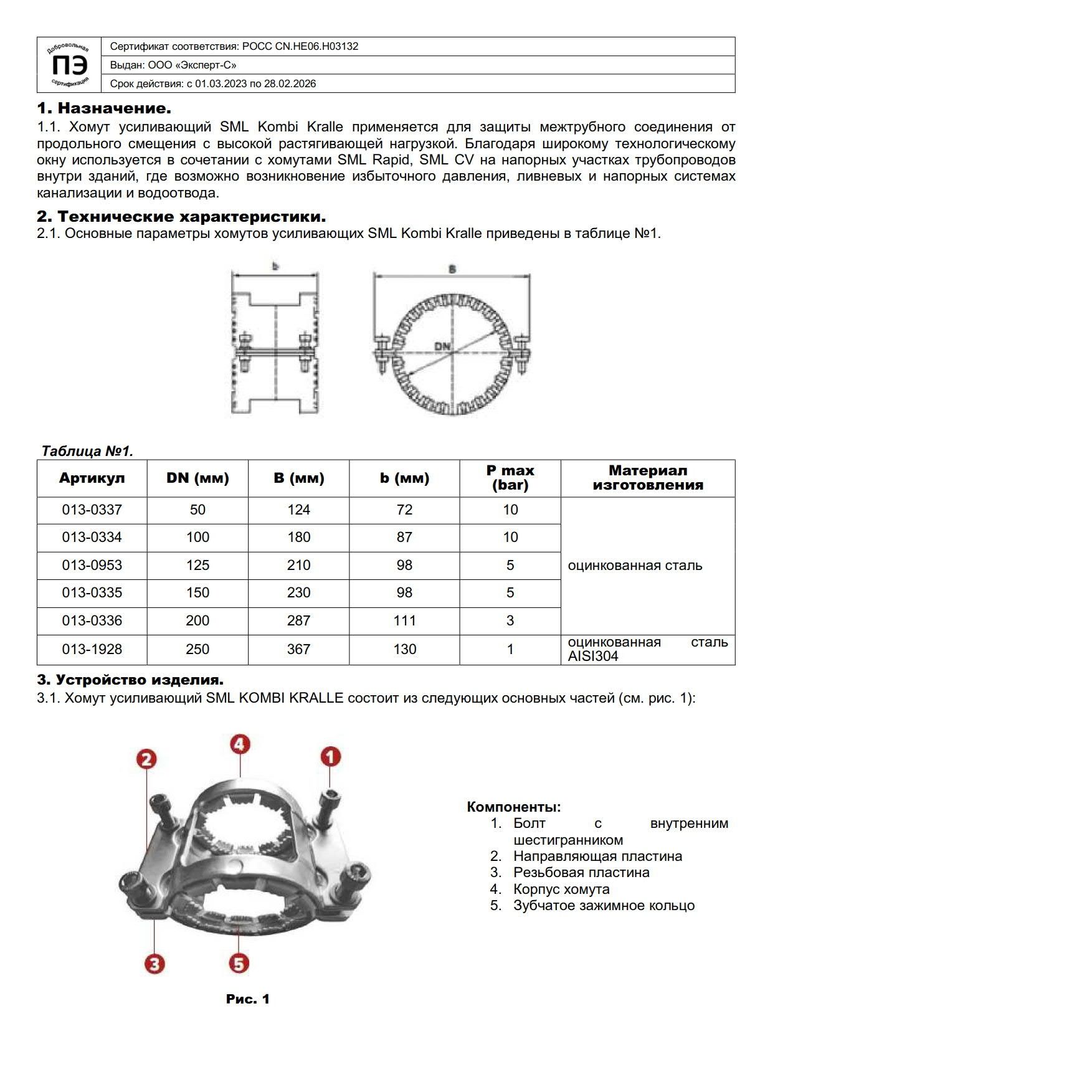Хомут усиливающий SML Kombi Kralle применяется для защиты межтрубного соединения от