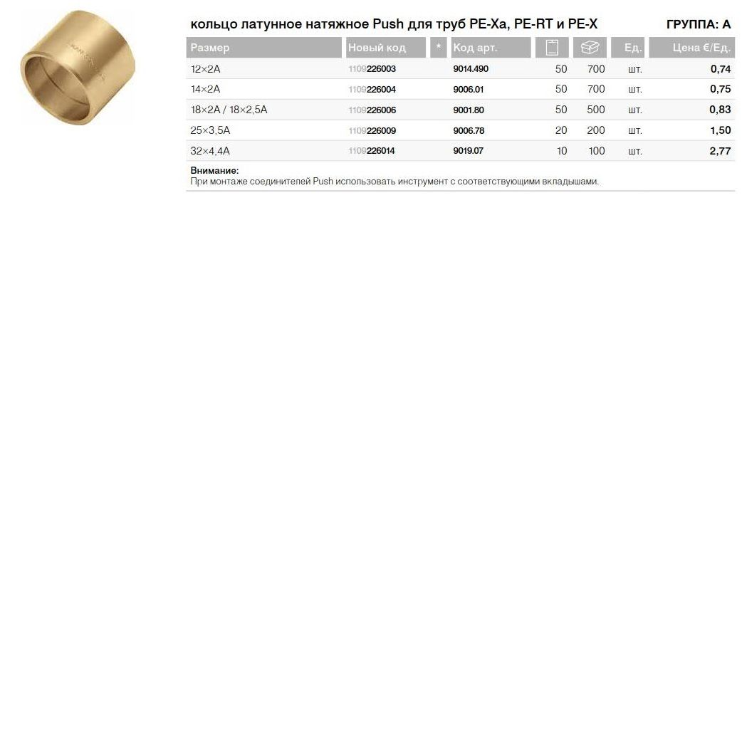 Соединение Push выполняется путем вставки соединителя в расширенный конец трубы, а затем натягивания латунного кольца с помощью ручного или гидравлического пресса. Эта техника не требует дополнительного уплотнения, гарантирует идеальную герметичность и прочность системы.