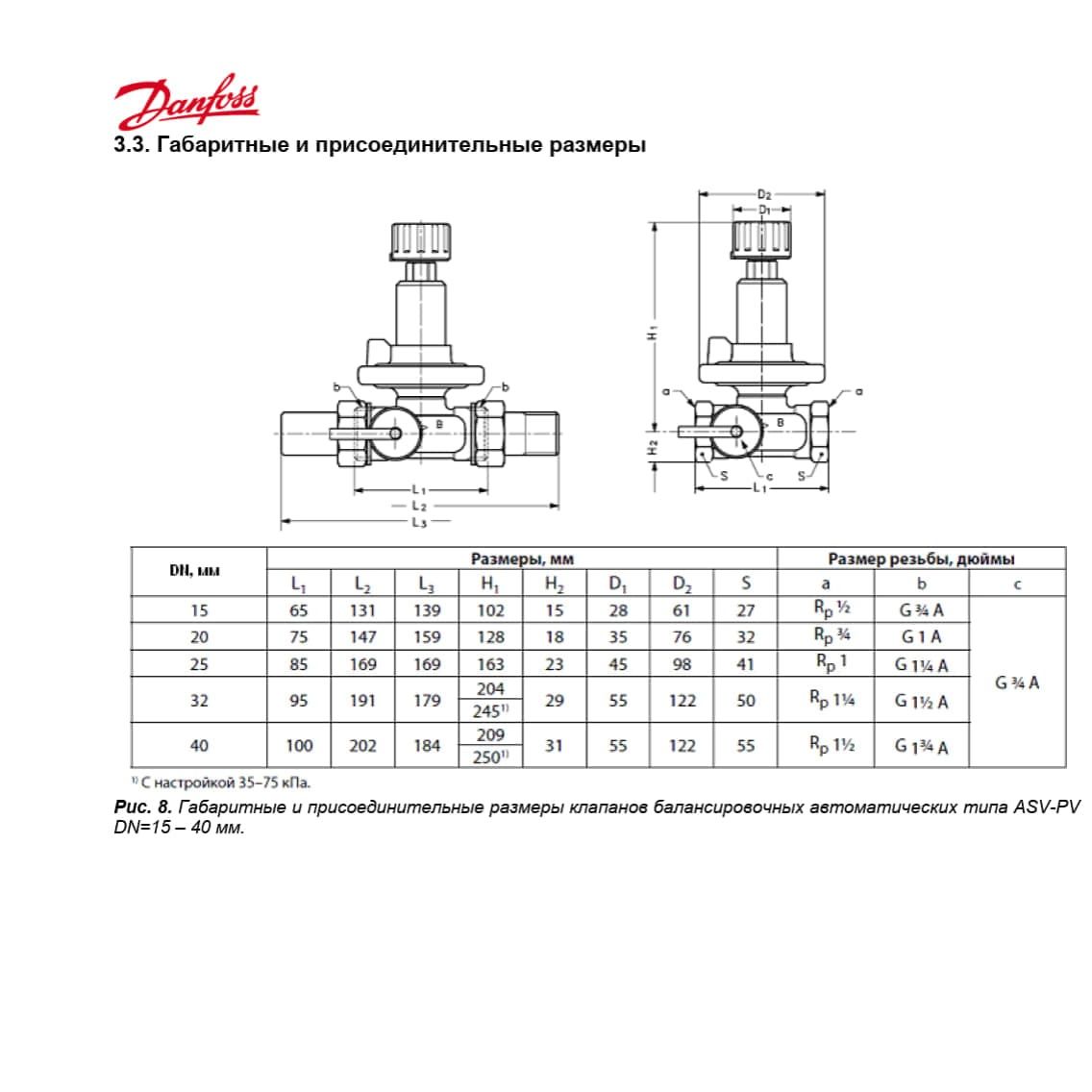 Клапан балансировочный автоматический ASV-PV DN20 (3/4") Вр/Вр PN16 0.05-0.25bar Kvs2.5м3/ч Danfoss 003L7602