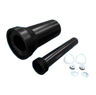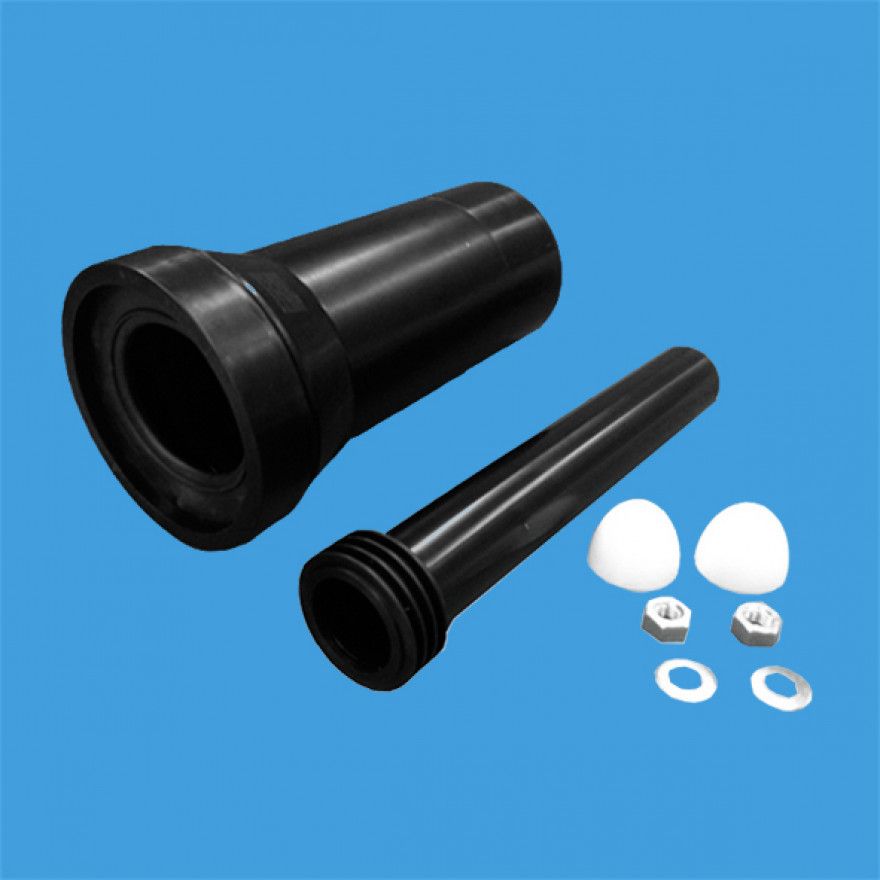 Переходный соединительный элемент McAlpine FP45R-KIT 1 с прокладкой для навесного унитаза (L304мм; вход/выход=45/59мм) для инсталяций с крепежными гайками, белыми декоративными заглушками и фановой трубой (L260мм; выход Дн=110мм). Страна - Соединенное Королевство Великобритания. Материал - пластик. Цвет - черный