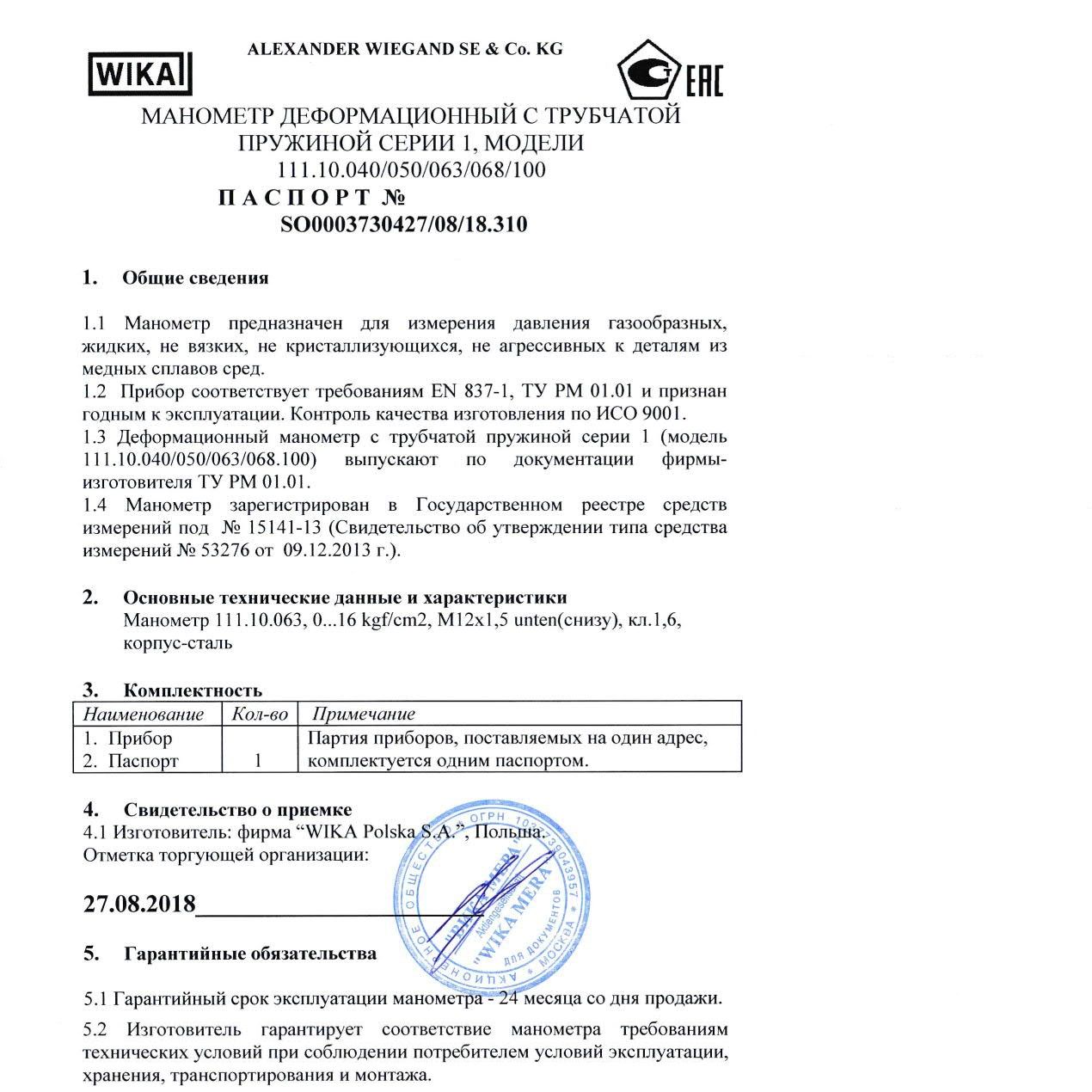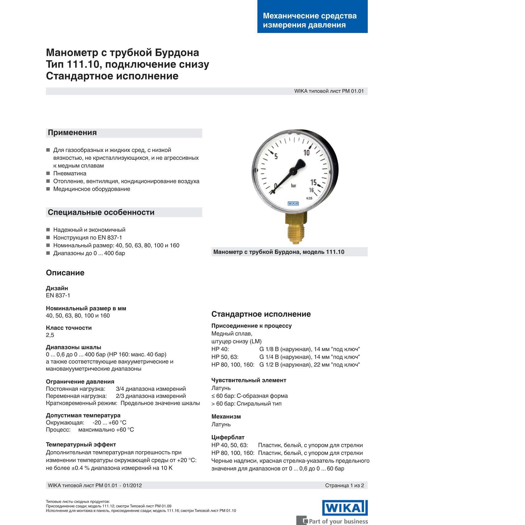 Общетехнический манометр 110.10.063 предназначен для измерения давления газообразных и жидких,не сильно вязких и не кристаллизующихся сред не агрессивных по отношению к медным сплавам