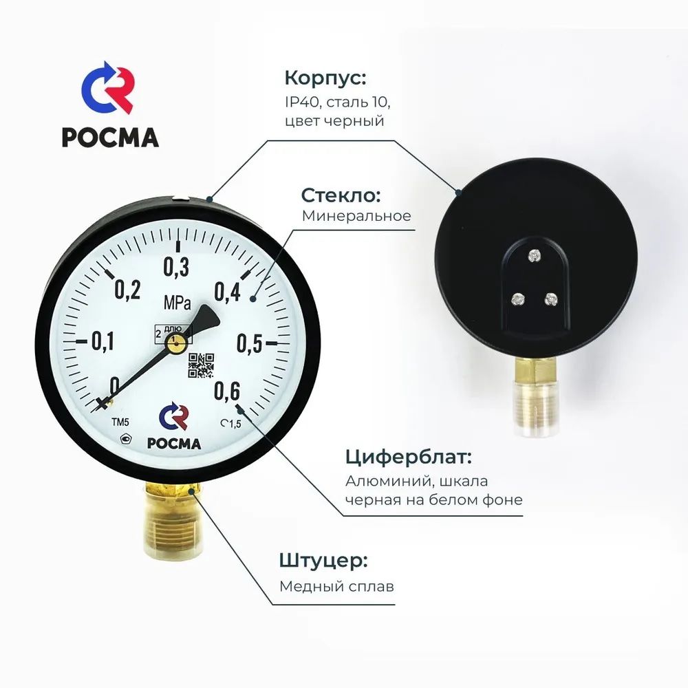 Манометр ТМ-510Р.00 радиальный Дк100мм 0-0,4МPa кл.1,5 G1/2" Росма