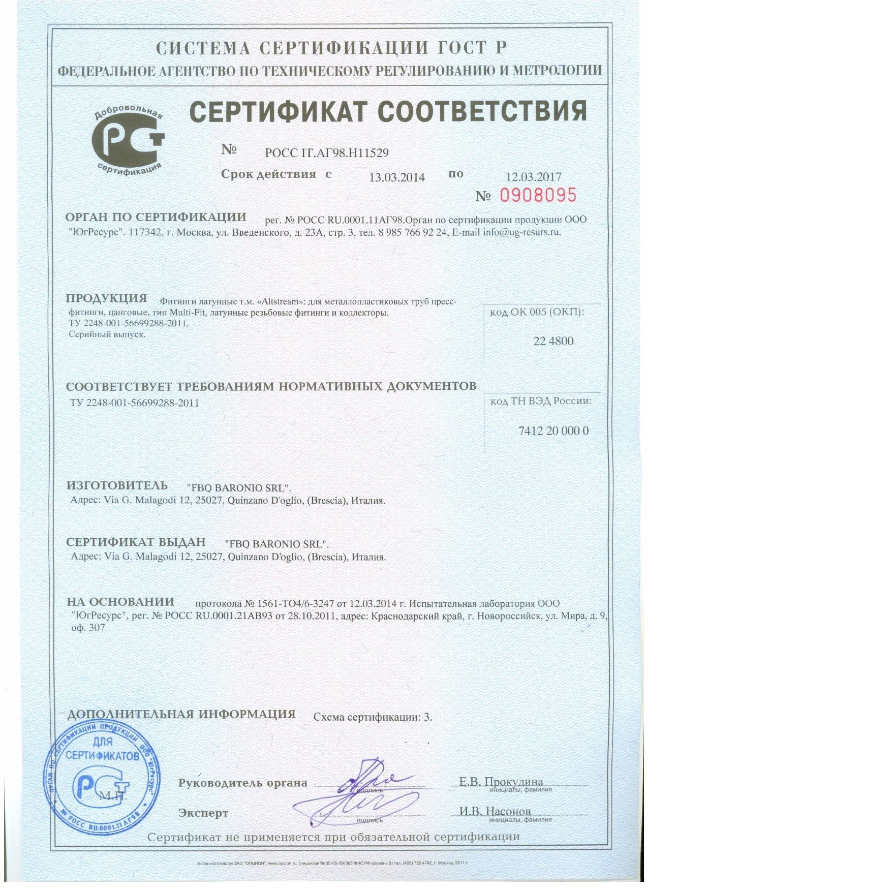 Цанговые фитинги Altstream изготовлены из латуни марки ЛС58-2 по ГОСТ 15527-70 и обладают высокими антикоррозионными свойствами. Фитинги производятся методом горячей штамповки из прутковых заготовок, что обеспечивает высокую прочность. Фитинг имеет два уплотнительных кольца из EPDM, диэлектрическую прокладку из PIFE, разрезное обжимное латунное кольцо (цанга), в упаковку с фитингом дополнительно уложены запасные уплотнительные кольца.
