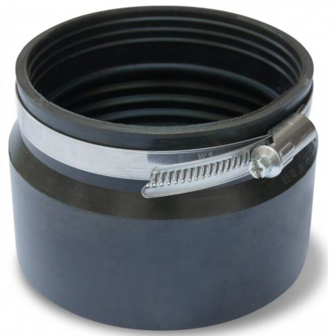 С одной стороны имеет отверстие для присоединения чугунной трубы, червячный хомут используется для надежного крепления и предотвращения потери манжеты.