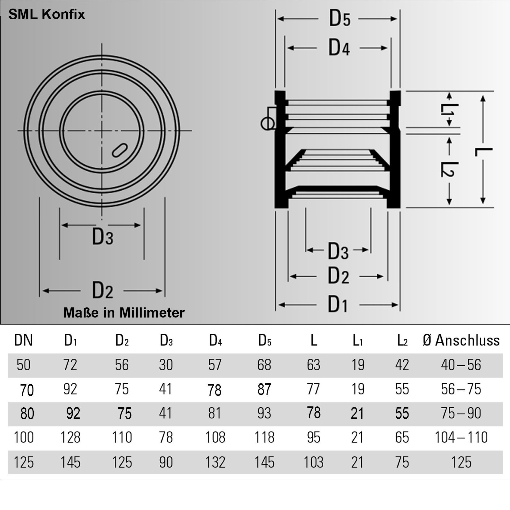 Переходники Konfix предназначены для подключения к чугунным трубам SML других труб из ПВХ, ПП, стали, нержавейки, керамики и т.д.
