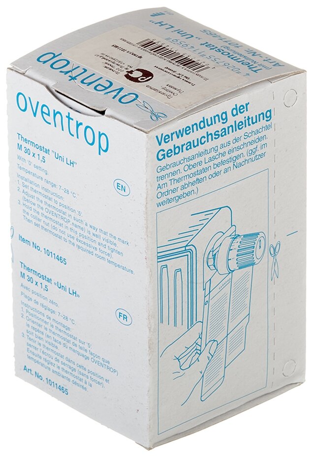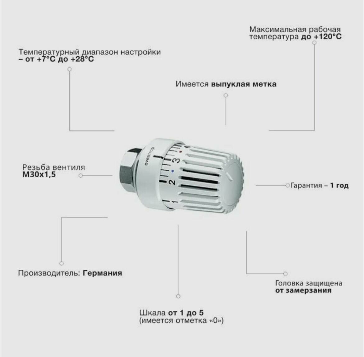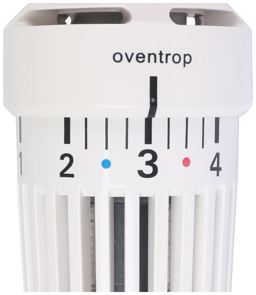 Термостатическая головка Oventrop Uni LH с жидкостным чувствительным элементом, позволяет регулировать температуру в помещении. Область настройки можно ограничить и заблокировать с помощью ограничителя. На термостатах имеется отметка для слабовидящих. Маркировка настройки на мемо-шайбе.