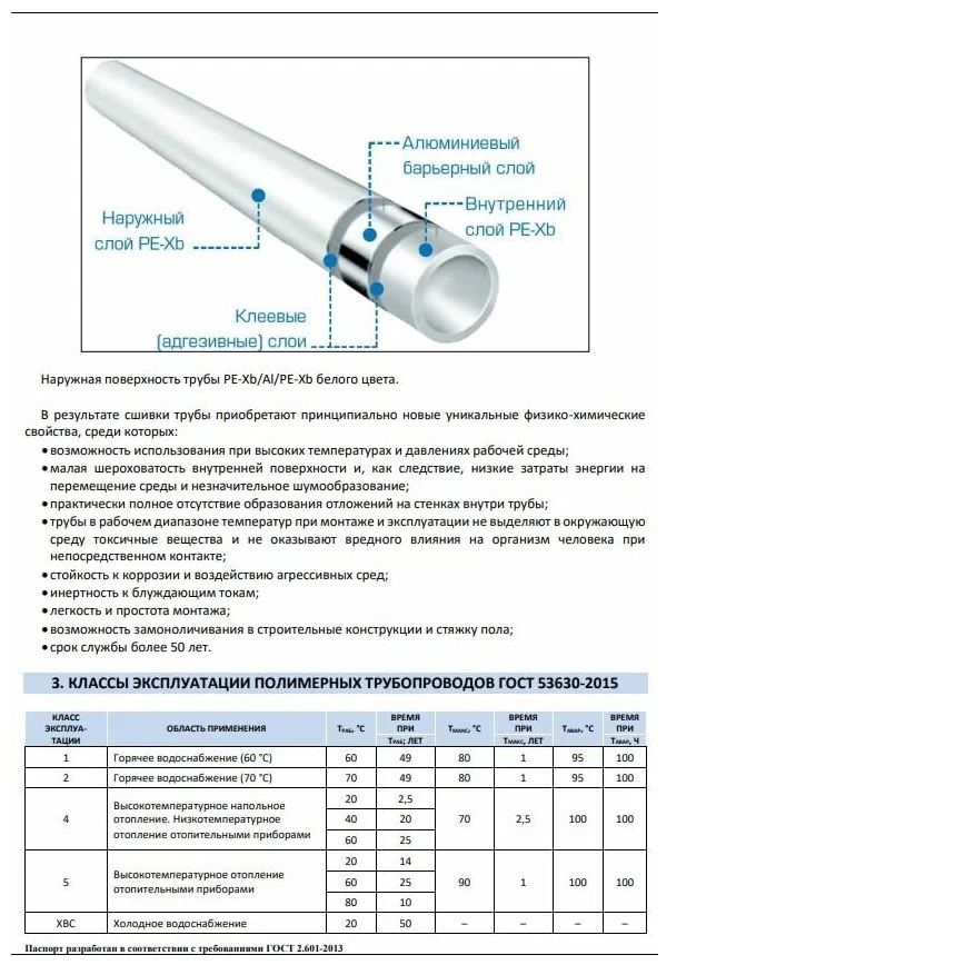 Срок службы трубы более чем 50 лет. У трубы Termico широкая область применения и долгий срок службы, в том числе и благодаря тому, что внутренний слой алюминия предотвращает проникновение кислорода в теплоноситель и рост микроорганизмов. Латунные фитинги Termico для металлопластиковых труб могут использоваться для всех размеров трубопроводов горячего и холодного водоснабжения. Фитинги изготовлены из никелированной латуни и соответствуют всем европейским требованиям к материалам и гигиенической безопасности. Производство построено с применением немецкого оборудования UNICOR, KRAUSS, BATTENFELD и сертифицированно по международной системе качества ISO9001.