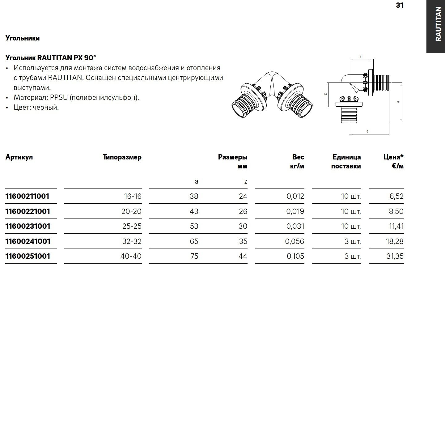 Угольник Rautitan PX 16 мм. 90 (арт. 11600211001) из PPSU